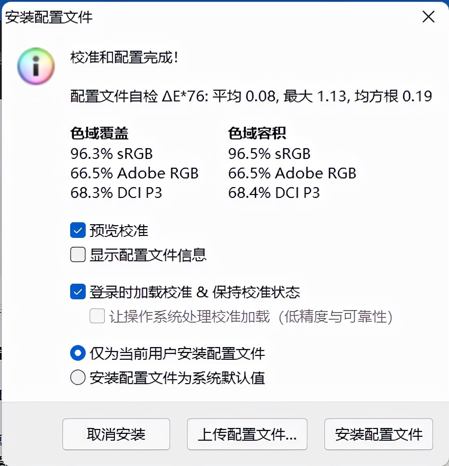 荣耀 MagicBook 14 2021 酷睿版在色准有了进一步提升,平均色彩偏离值 ΔE 仅 0.19,最大色彩偏离值 ΔE 仅 0.87,表现很不错。