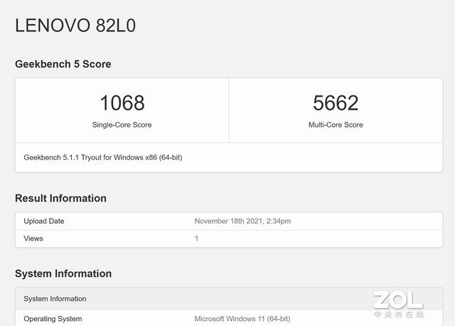 在GeekBench 5中,单核得分1068分,多核5662分。