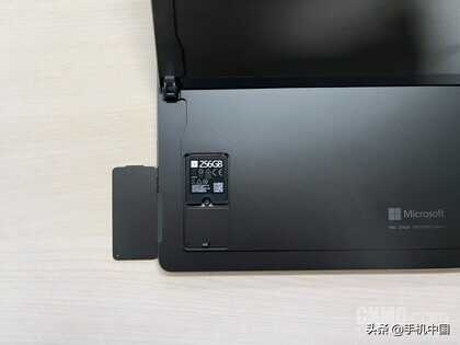 先别着急把支架盖上,打开支架后,支架下面的空间还另有玄机。细心的你相信已经发现了,Surface Pro 8的支架下方还隐藏了一块盖板,当我们用卡针打开后,才发现是固态硬盘的接口。这一代的Surface Pro 8摒弃了之前通过MicroSDXC卡槽进行容量拓展的方式,转而采用了可拆卸SSD的设计,不过这块儿SSD的接口可并不常见,为M.2 2230,市面上同款产品还是比较少的,所以如果后续想通过更换SSD升级Surface Pro 8的容量,那还真是要费点心思去找找。