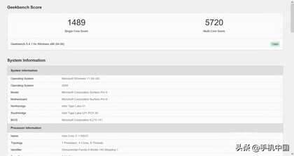 对CPU最后的一项测试来自Geekbench 5,Surface Pro 8取得了单核1489,多核5720的成绩。