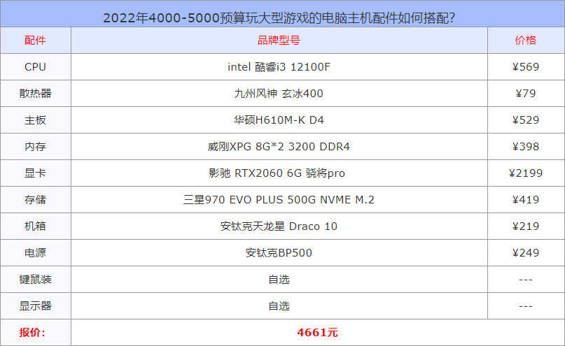 总结:2022年4000-5000预算玩大型游戏的电脑主机配件如何搭配?