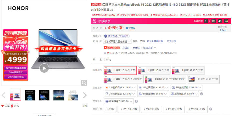 荣耀推出最新2022款Magicbook14,有两种12代酷睿处理器可选,i5-12500H(12核心16线程)一般就能满足普通日常办公所需,价格也仅需5K左右。有更多预算的可以入手i7-12650H档位的,也不过就贵了几百块。