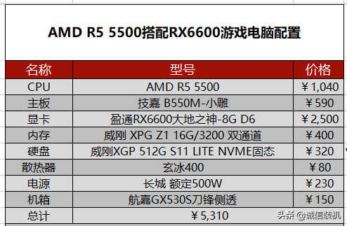 这套AMD锐龙R5 5600配RX6600的3A平台主机整体在6000元不到,搭配的RX6600价格相比RTX2060更便宜,但是性能上更高一些,这也是A卡的性价比优势所在,基本达到这个档次的显卡,几乎在1080P基本通吃市面上所有的游戏