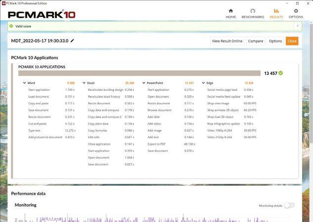 Office 套件及Edge 浏览器测试能够做到 13457 的成绩,各方面速度提升明显,总体相比上一代强了30% 左右。