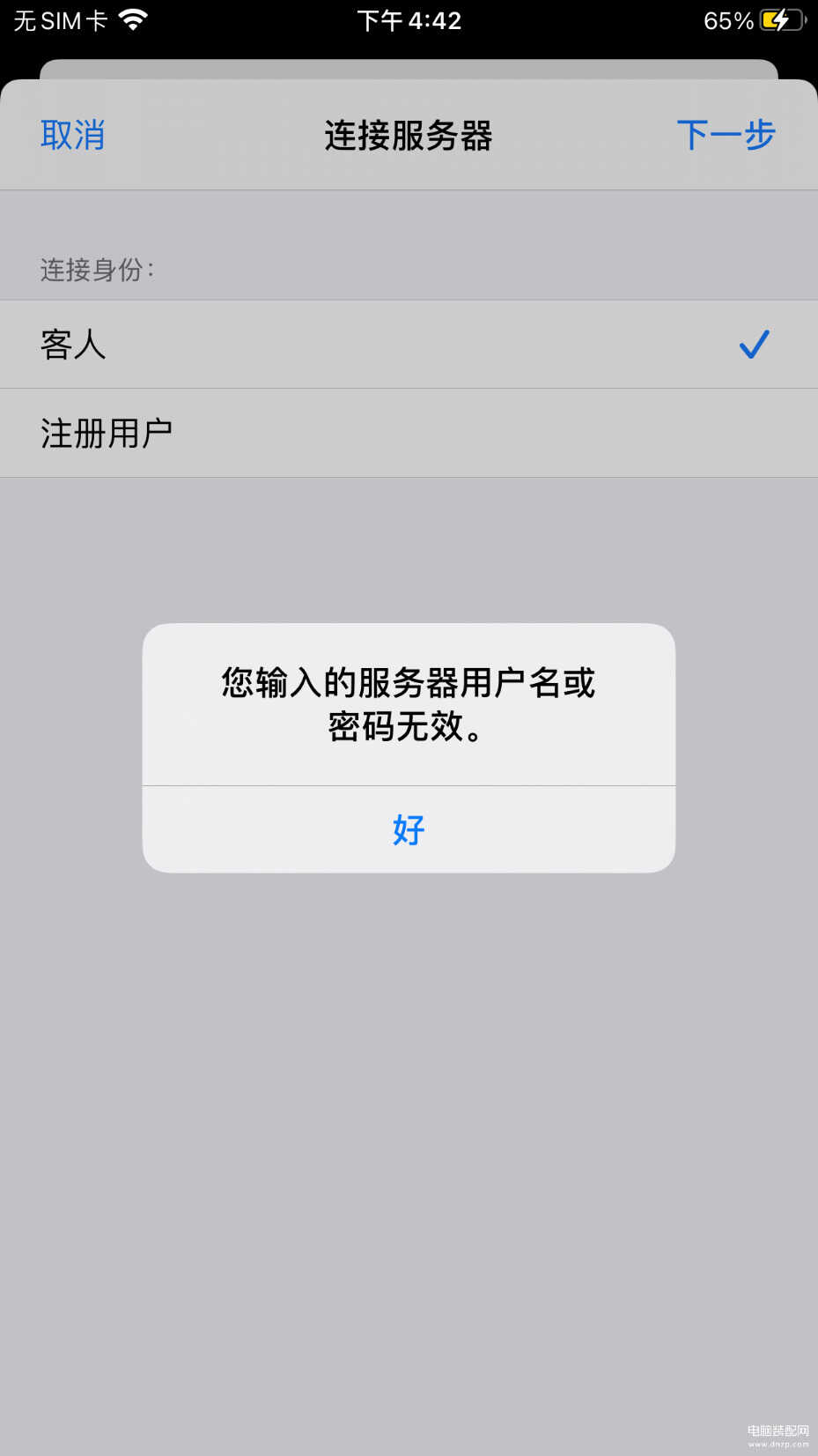 3、选择客人身份连接,可以避免输入名称和密码。点击“下一步”。