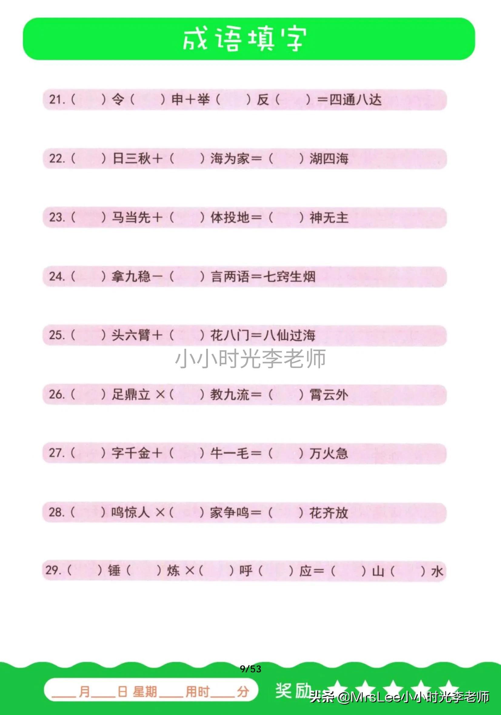 成语填字(四年级成语填空100题)