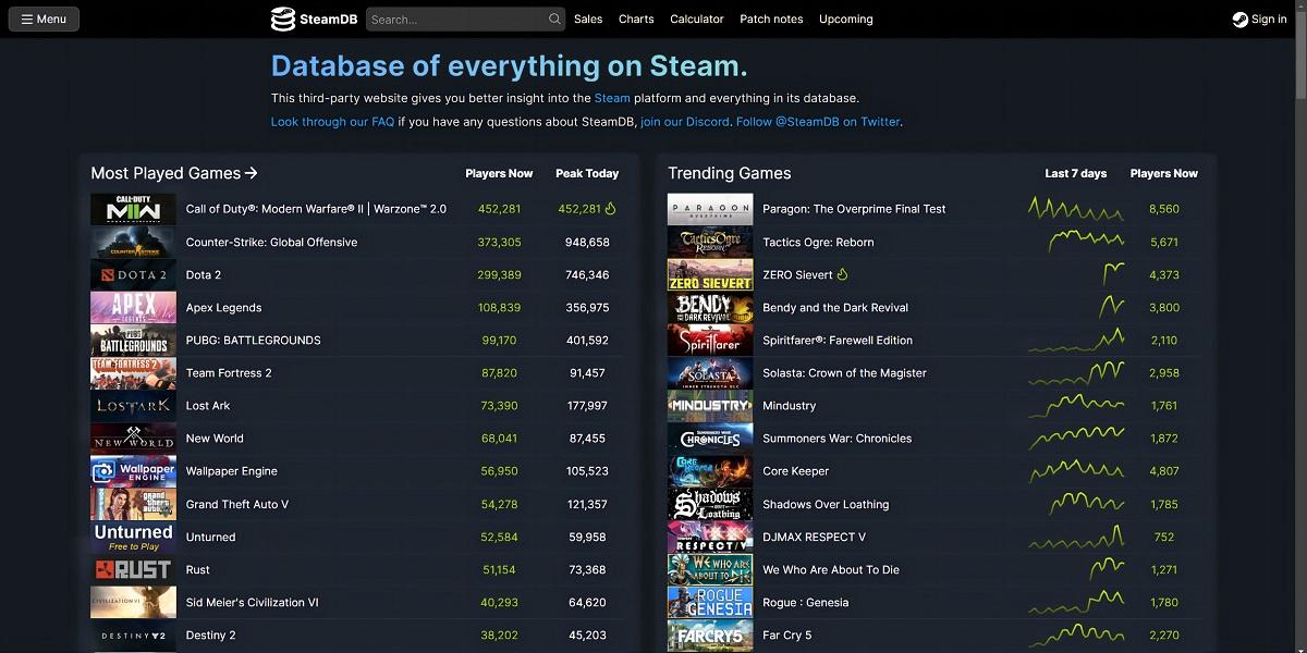《使命召唤:战区 2》今日正式上线,Steam、PS、Xbox及暴雪战网等平台均可游玩,根据SteamDB的数据显示,当前《使命召唤:战区 2》的Steam在线玩家数已经突破40万(452,281),超过《CS:GO》和《Dota 2》,在线人数仍在上升。