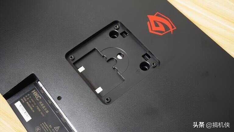 支撑架底部为钢铁材质,尾部同样设计有防滑脚垫,上层采用细腻磨砂手感的材质,塑定多棱边造型,折角位置与支撑脚相连,两边各预留三个螺钉孔位,配合配件螺钉锁紧,显示器的安装就算是完成了。我比较欣赏的一点是IG27Q的底座,三点支撑不会占用桌面多少面积,显示器下还可以放一些小物件。