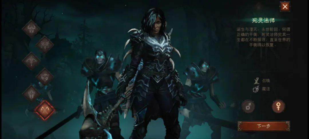 我也试着体验了一把,目前游戏内开放了野蛮人、圣教军、猎魔人、武僧、死灵法师、魔法师共6个职业,这点基本和PC端一致。