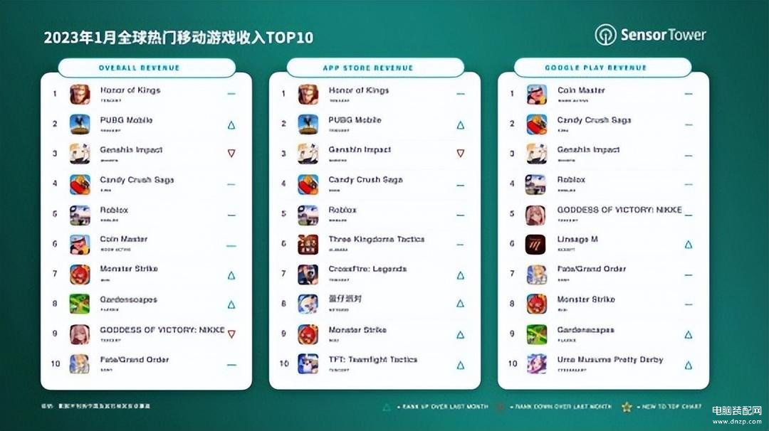 前不久知名移动应用数据分析公司Sensor Tower公布了2023年1月份全球手机游戏营收排行榜。分别分为总排名、AppStore排名和谷歌市场排名,到底是哪些游戏上榜了呢?这其中又有什么奥秘呢?小弟今儿就给大家分析分析!