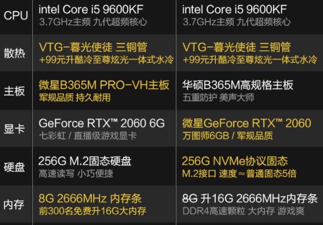 9600KF/RTX2060台式组装电脑主机直播吃鸡高配清单