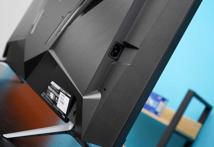 由于屏幕尺寸大,支架设计风格有几分类似于电视,但它不是一台电视,而是一台43英寸的电竞显示器。