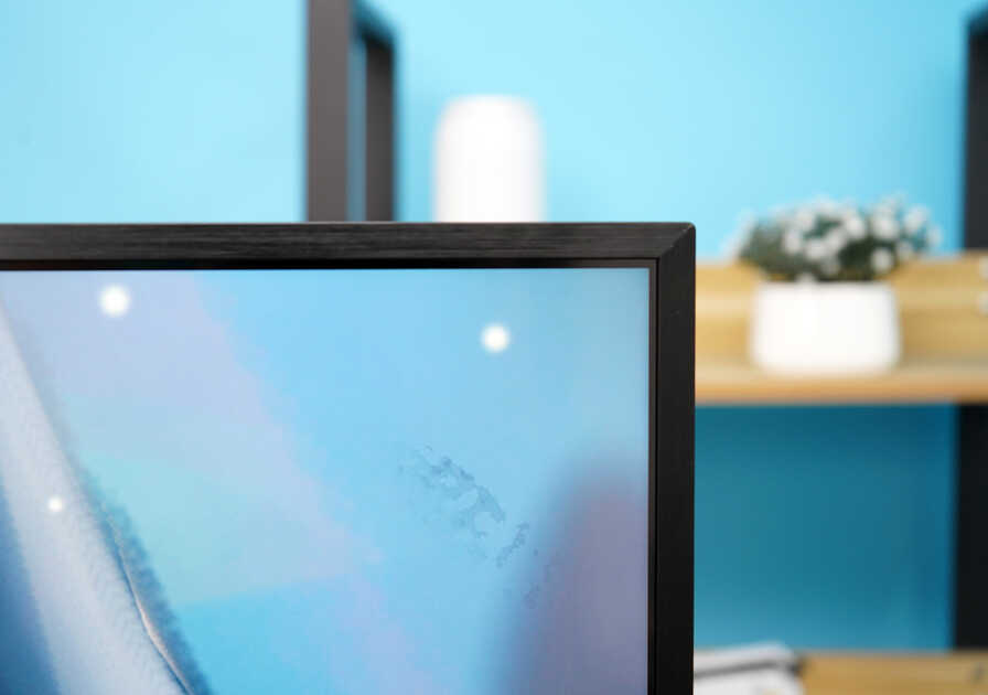三边窄边框设计,都是等宽的,下巴宽度也控制比较理想。这个尺寸,比很多电视机的边框要窄些。