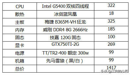 该配置满足了游戏对一档~三档的需求,G5400主频3.7Hz满足了1~3档游戏对CPU的需求,选用了750TI显卡,满足提高画质的需求。采用一个固态来存储,提高游戏过图速度,减少游戏等待时间,优化体验。8G内存,满足游戏自身需求并且过剩。