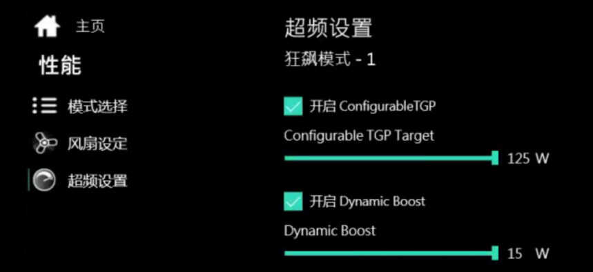 此功能默认是打开状态,OEM厂商比如机械革命在其电竞控制中心也有Dynamic Boost相关选项,并且还可以自由设置功耗分配,比如钛钽plus的Dynamic Boost控制范围就是5~15W。