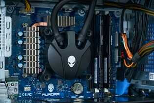 风道方面,主机的前面板和具有通风孔的侧面为进风口,主机的顶端和后面为出风口,外星人AURORA R12在前面板后面安置了一个风扇帮助进风,侧面的通风孔位置正对着电源和显卡的进风位置,设计非常合理。