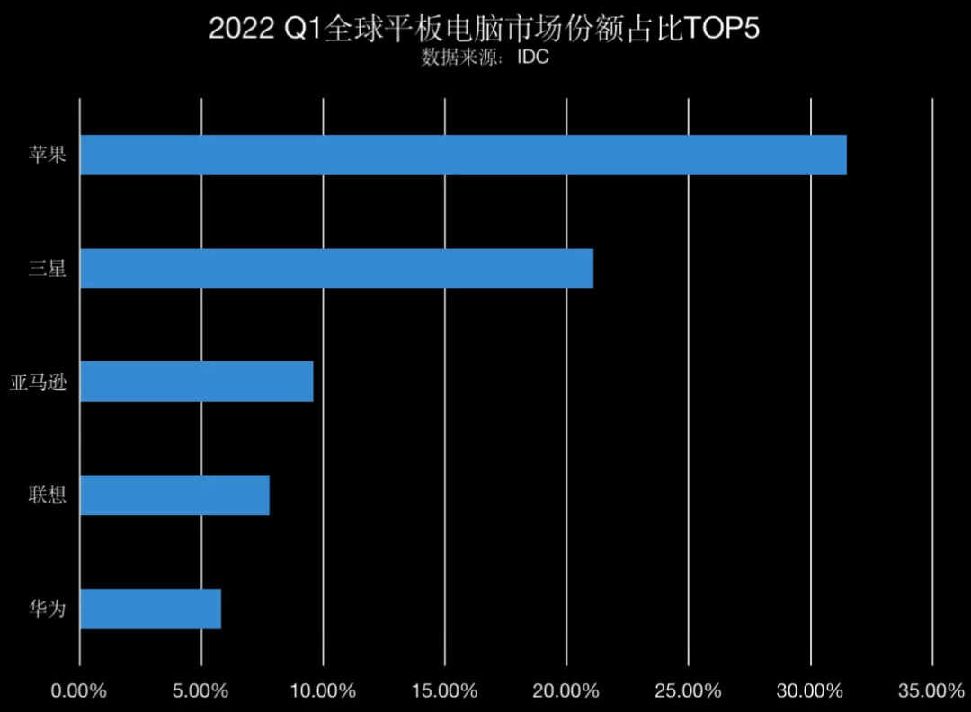 近日,国际数据公司 IDC 发布了2022年Q1全球平板电脑市场跟踪报告,报告显示,2022年第一季度,全球平板电脑市场总出货量约为3840万台,同比下降3.9%,市场需求呈现放缓状态,同时,IDC 也公布了此次Q1全球平板电脑销量的TOP5名单。