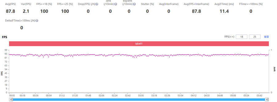 在《王者荣耀》游戏中,Xiaomi Civi 1S可以以90帧的帧率运行游戏,我们使用PerfDog来对游戏帧率进行测试,经过一局游戏的测试,Xiaomi Civi 1S运行《王者荣耀》的平均帧率为87.8FPS。