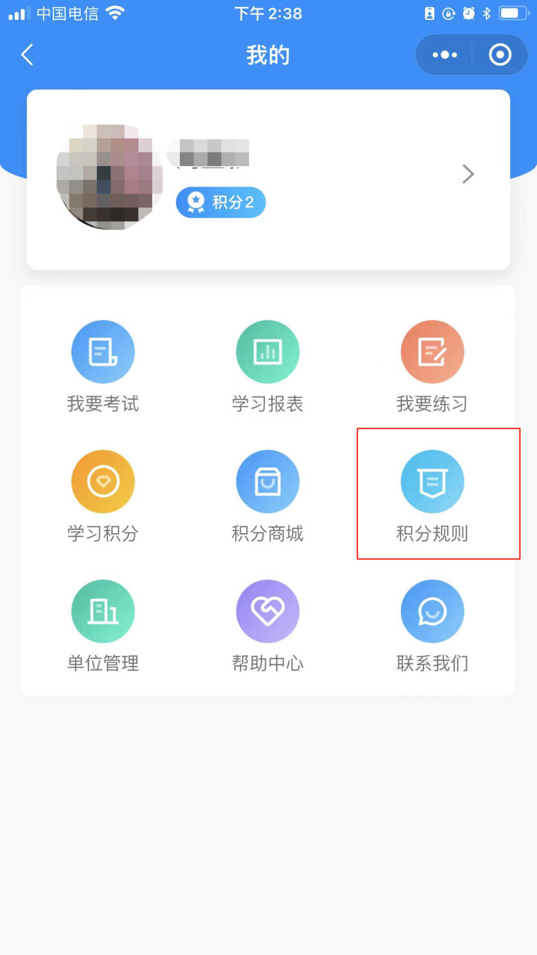 返回“我的”个人页面,点击积分规则,了解积分详情。