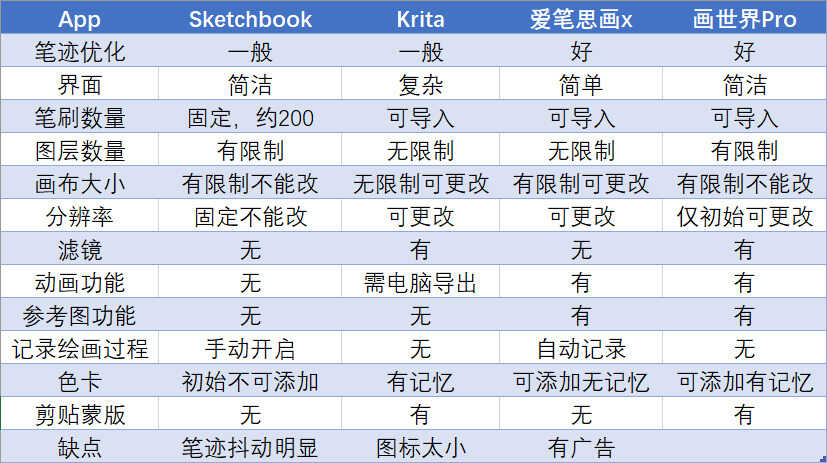 这个app是近期我比较喜欢用的,完全取代了之前使用的sketchbook,它相比sketchbook功能更多,支持更改画布尺寸和分辨率,笔刷选择也更多,还可以制作动画和记录绘画过程。爱笔思画的记录功能是自动的,不需要开启,可以需要时再导出视频,最长300秒,它记录的视频和sketchbook一样仅记录笔画的变化,不同的是不会记录画布的放大缩小,始终是完整的画面。