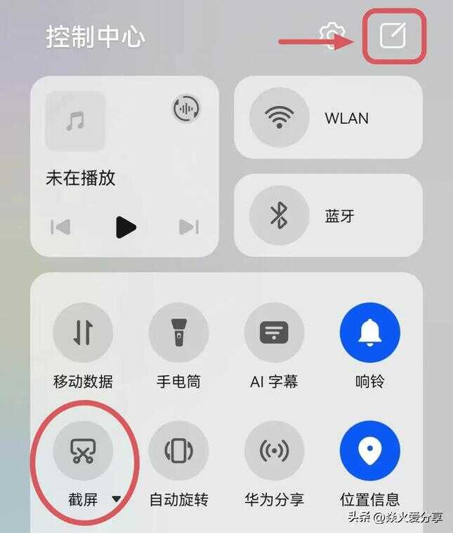 如果说你的控制中心里没有截屏图标,应该是隐藏了,可以点击右上角的写字板图标,然后选择编辑快捷开关,下方就会出来很多隐藏图标,找到截屏图标按住它拖上去,就可以使用了。