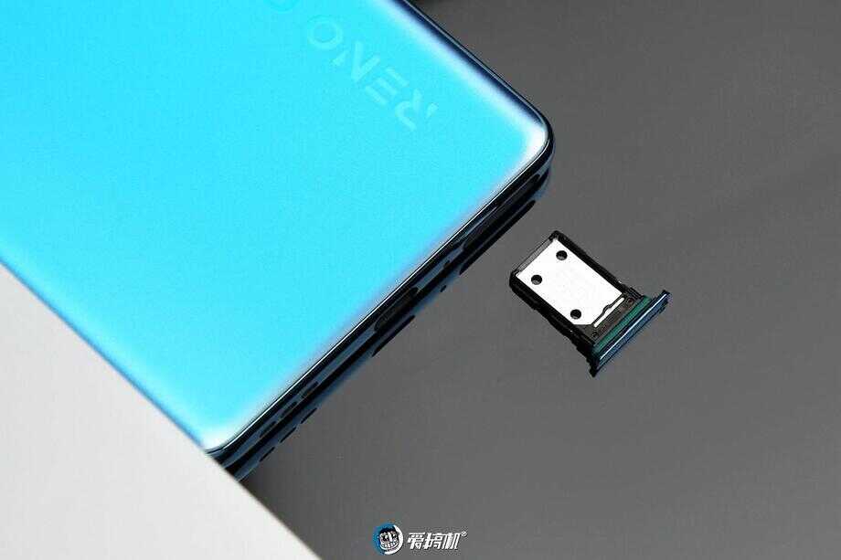 OPPO Reno5 Pro的大颗粒AG磨砂玻璃工艺,从左右上下不同角度看,都会有不同的反光。亮蓝有时,闪粉有时,闪绿有时。