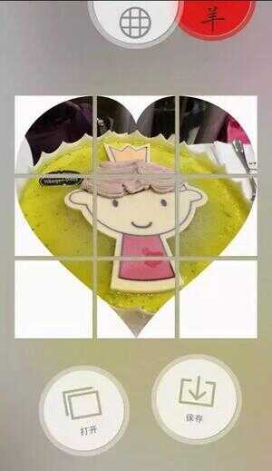 2、安装 9cut九宫格切图APP后,点击下方的打开按钮,然后选中想要切成九宫图的图片,之后就变成九宫格新式了。