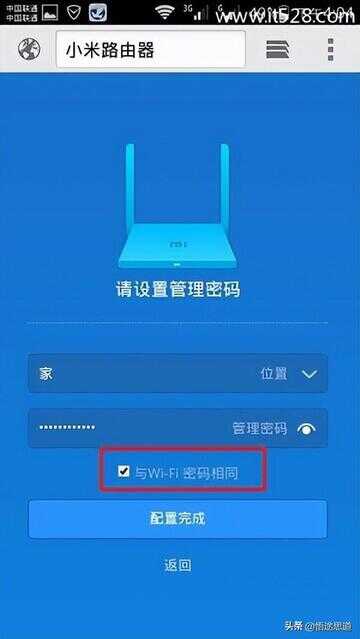 也可以勾选下面的“与Wi-Fi密码相同”的选项,即把WiFi密码作为管理密码。——>点击“配置完成”。