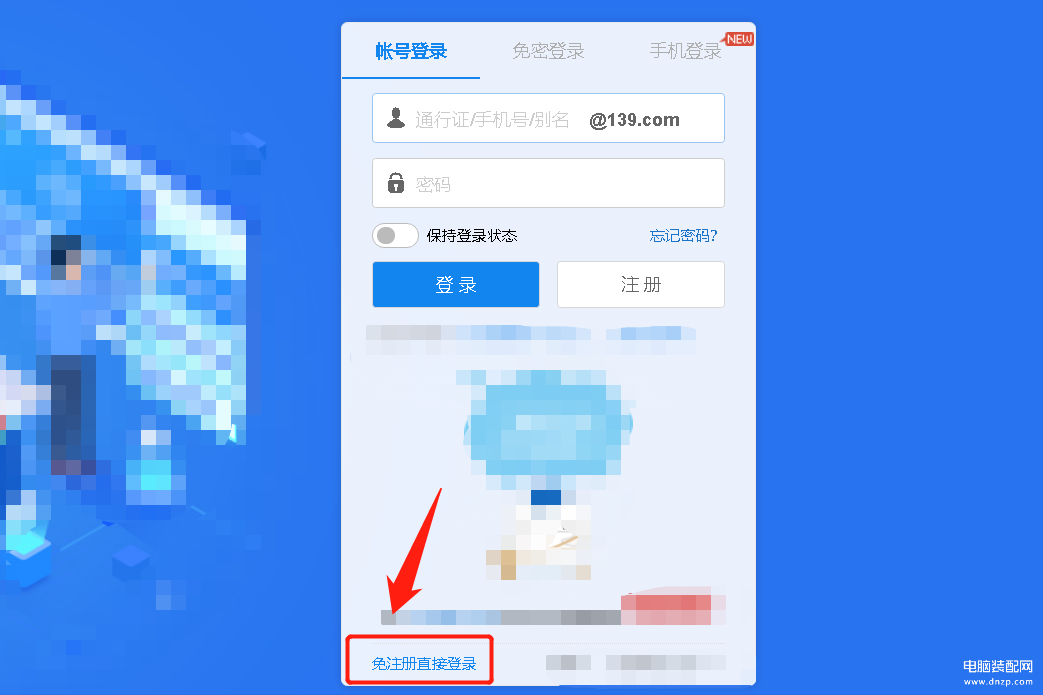 部分邮箱开启了“手机号码免注册”的功能,直接点击此按钮。如下图: