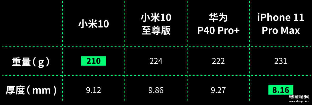 9.86 mm 的典型厚度( 实测 ),不但高于自家的米 10 系列( 9.12 mm ),也高于已经因为太厚被大家吐槽了许久的华为 P40 Pro+ ( 9.27 mm )。