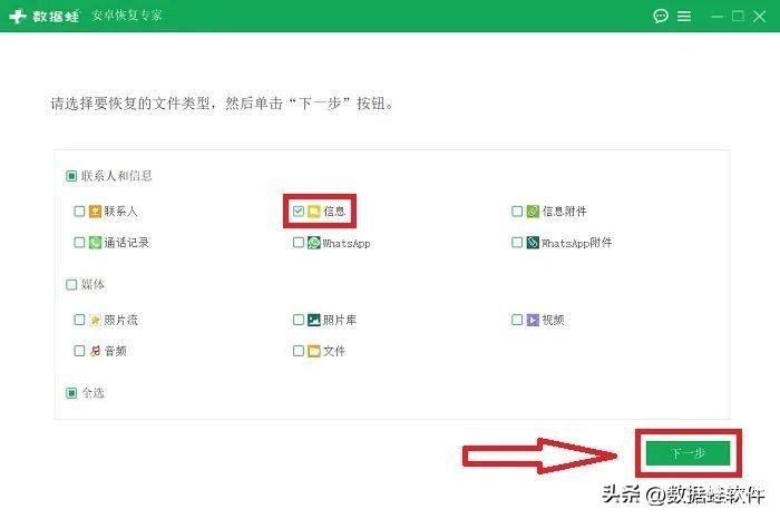 我们还可以借助数据恢复软件来恢复删除的短信。小编演示的这款是数据蛙安卓恢复专家,它的功能有多强大我就不详细说了,大家跟着看操作有多简单就明白啦!