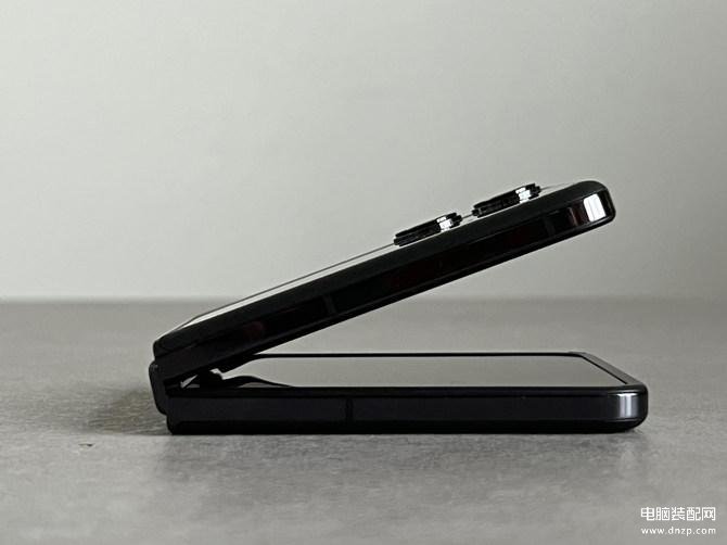 升级铰链后的Find N2 Flip可以实现45°-110°的悬停,可能是为了照顾到用户开合时的流畅度,前半段开合会轻松一点,到了中后段阻尼会有一点明显的加大,在开合角度大于45°时,即可实现多角度的自由悬停。这里我们直接看看最小和最大角度的悬停。