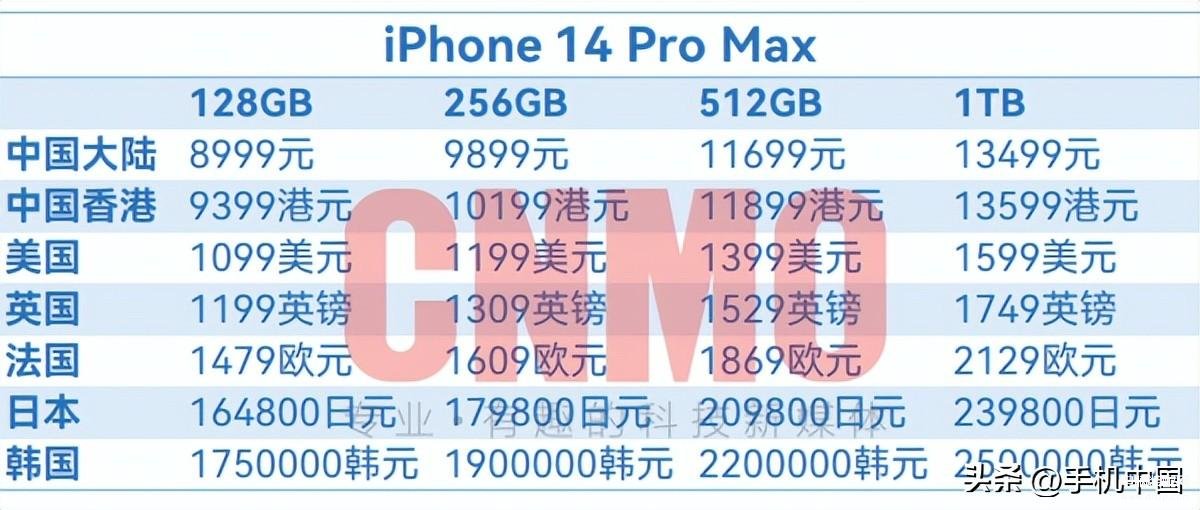 iPhone 14 Pro Max同样有128GB、256GB、512GB以及1TB四种版本,售价分别为1479欧元、1609欧元、1869欧元以及2129欧元。