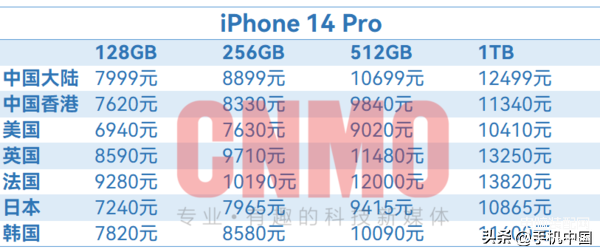 iPhone 14 Pro有128GB、256GB、512GB以及1TB四种版本可选,售价为1329欧元、1459欧元、1719欧元以及1979欧元。