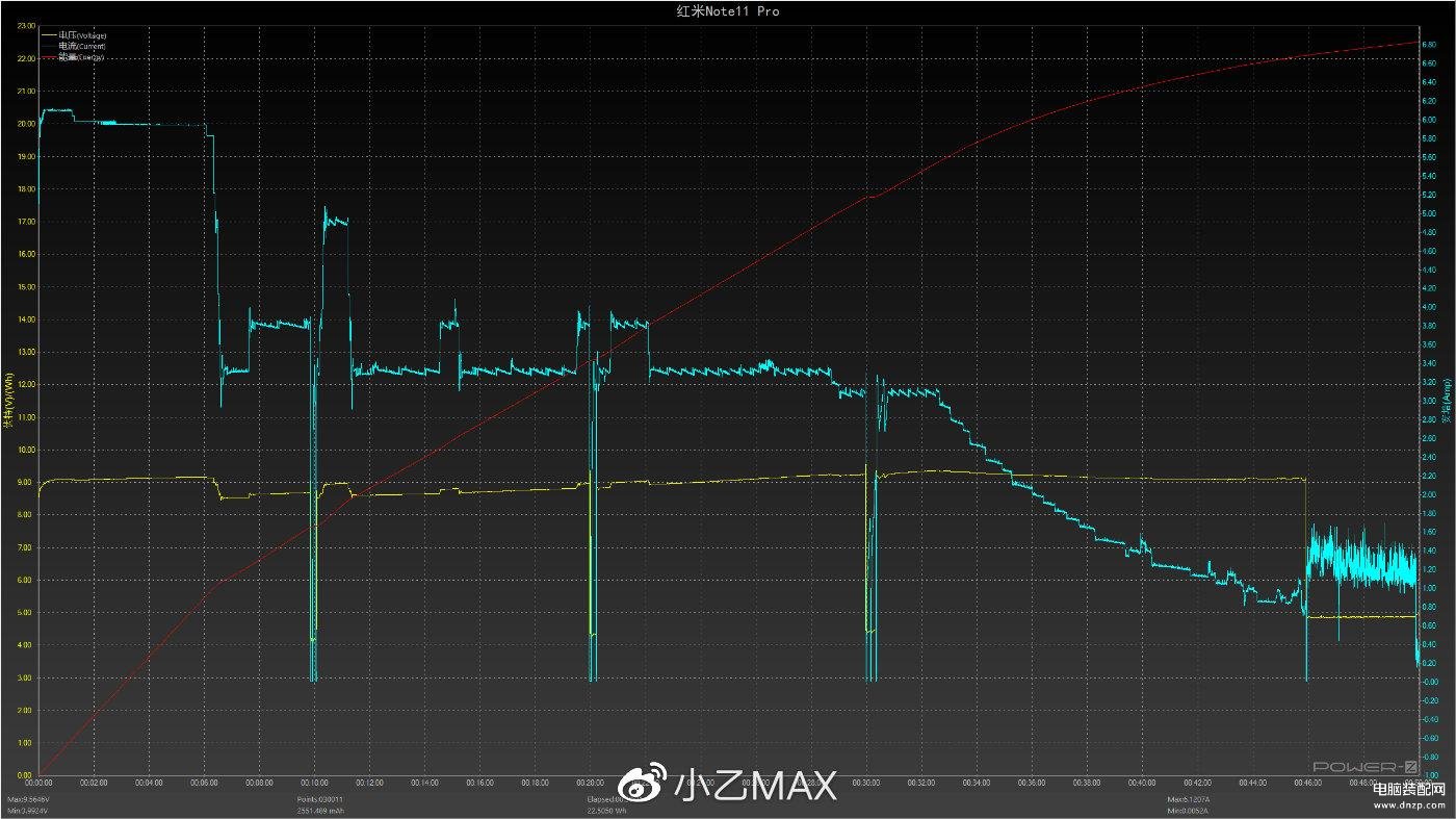 Note11 Pro充电速度测试:2%开始,峰值速度最高达57W,10分钟38%,20分钟61%,30分钟82%,40分钟97%,45分钟100%,100%时还有8W充电功率,涓流5分钟,50分钟充电完成。