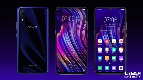 该机使用了灵动水滴屏和弦月弧的边框,拥有幻夜蓝、魅影紫配色,3D幻影极光纹设计。在 vivo X23上搭载了第四代光电屏幕指纹。