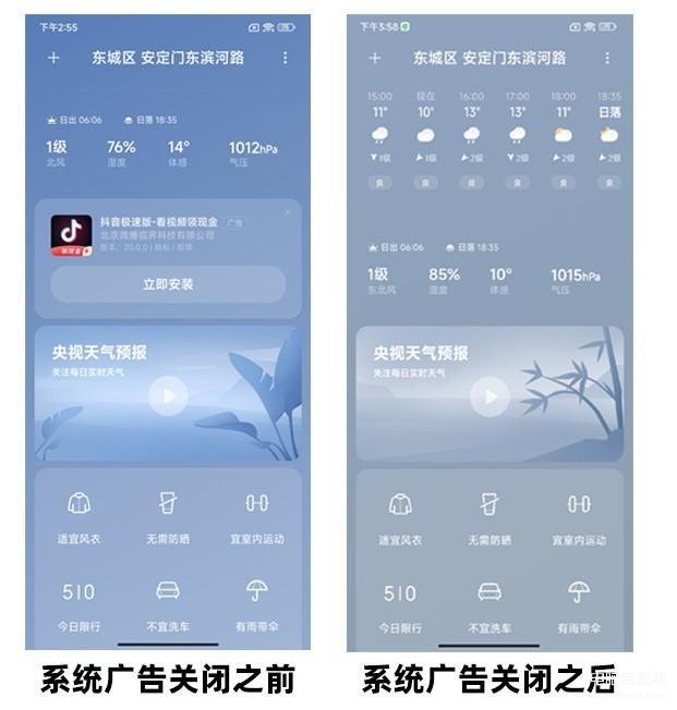 系统广告关闭前后对比