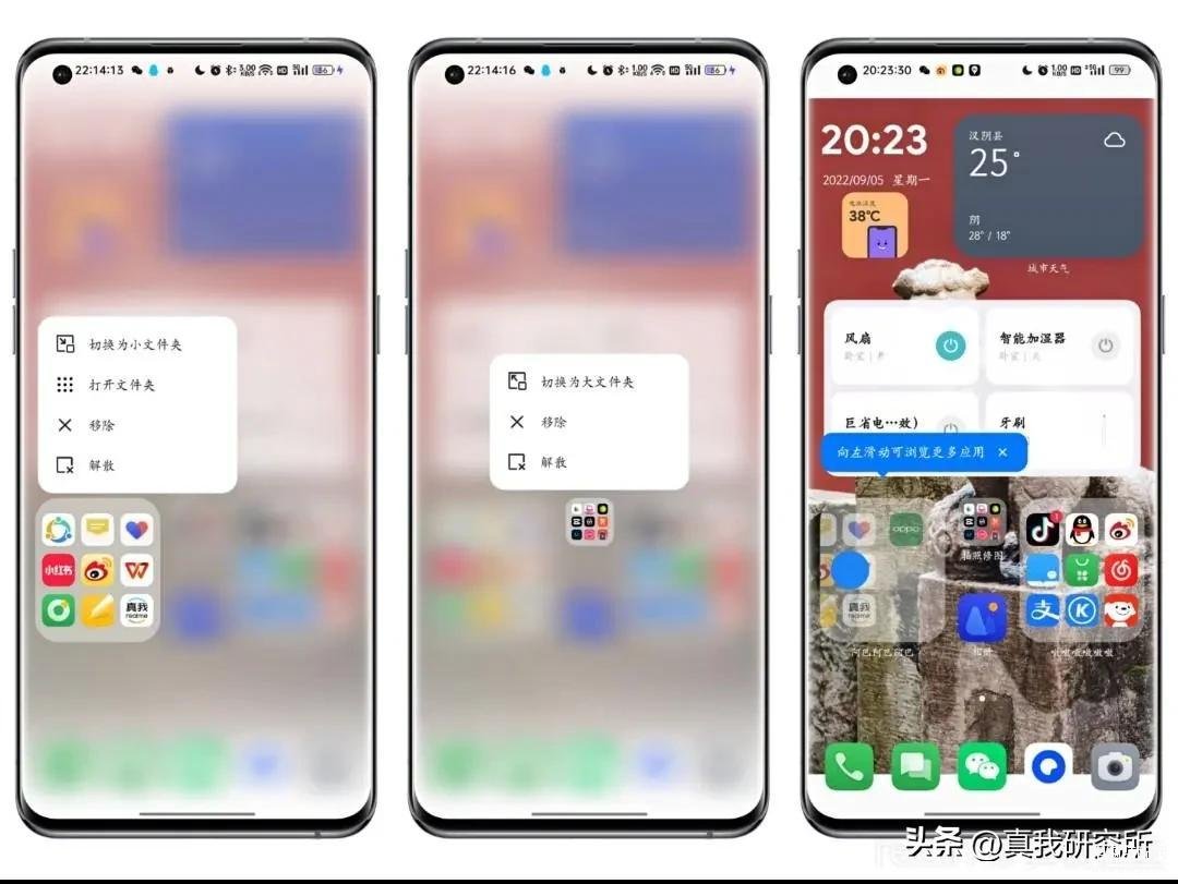 realme UI4.0升级后,长按文件夹就能切换大文件夹。