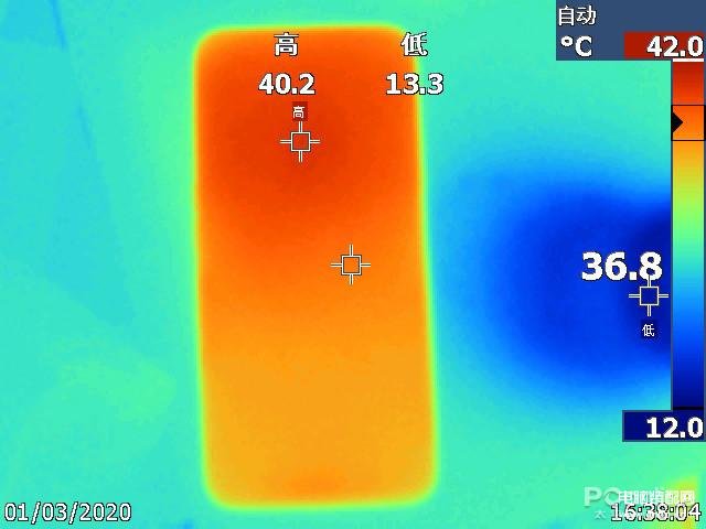 realme 真我X50 5G在散热方面采用了新一代多重散热方案,配备了创新的五重立体冰封散热,通过大面积的石墨片以及导热凝胶+导热硅胶垫+铜箔组合,给“火热”的5G基带带来清凉,当然还有新一代的铜管散热3.0方案,进行15分钟的电池压力测试来看,室温25℃情况下,手机正面温度为40.2℃,背面温度为38.4℃,可见realme 真我X50 5G这套散热方案的强悍了。