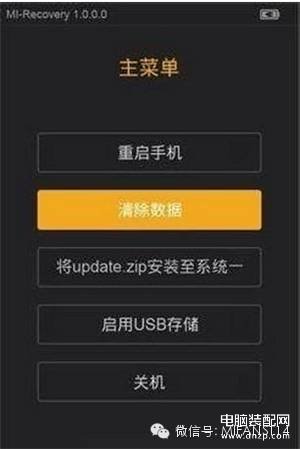1、在关机状态下,按住“音量键+”和“电源键”开机,会进入Recovery模式。在这个模式,触屏不能用,要用音量+-来选择,电源键来确认。