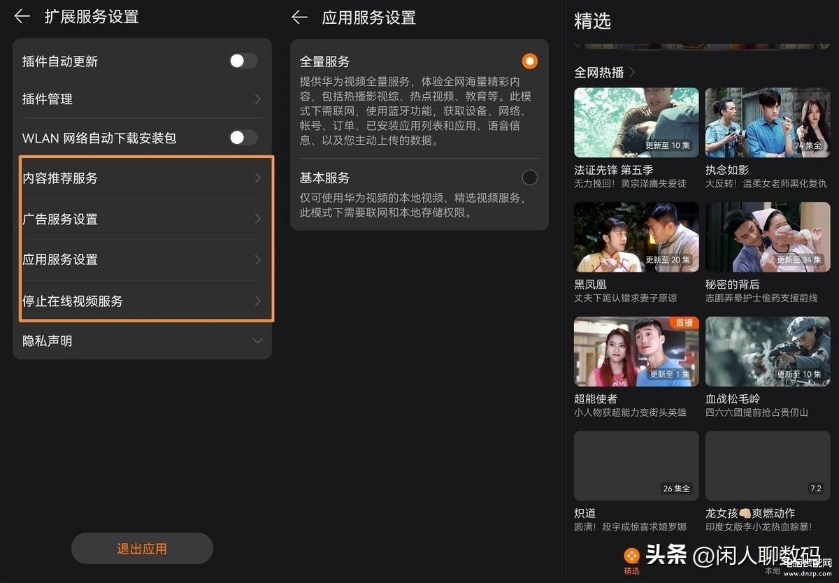 在基本服务模式下,视频APP仅可以观看一小部分的精选内容,大部分内容都需开启全量服务,所以建议关闭在线服务。