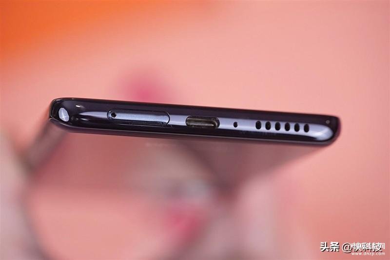 底部边框开孔较多,从左到右分别是SIM卡卡槽、Type-C接口、降噪孔、扬声器开孔。