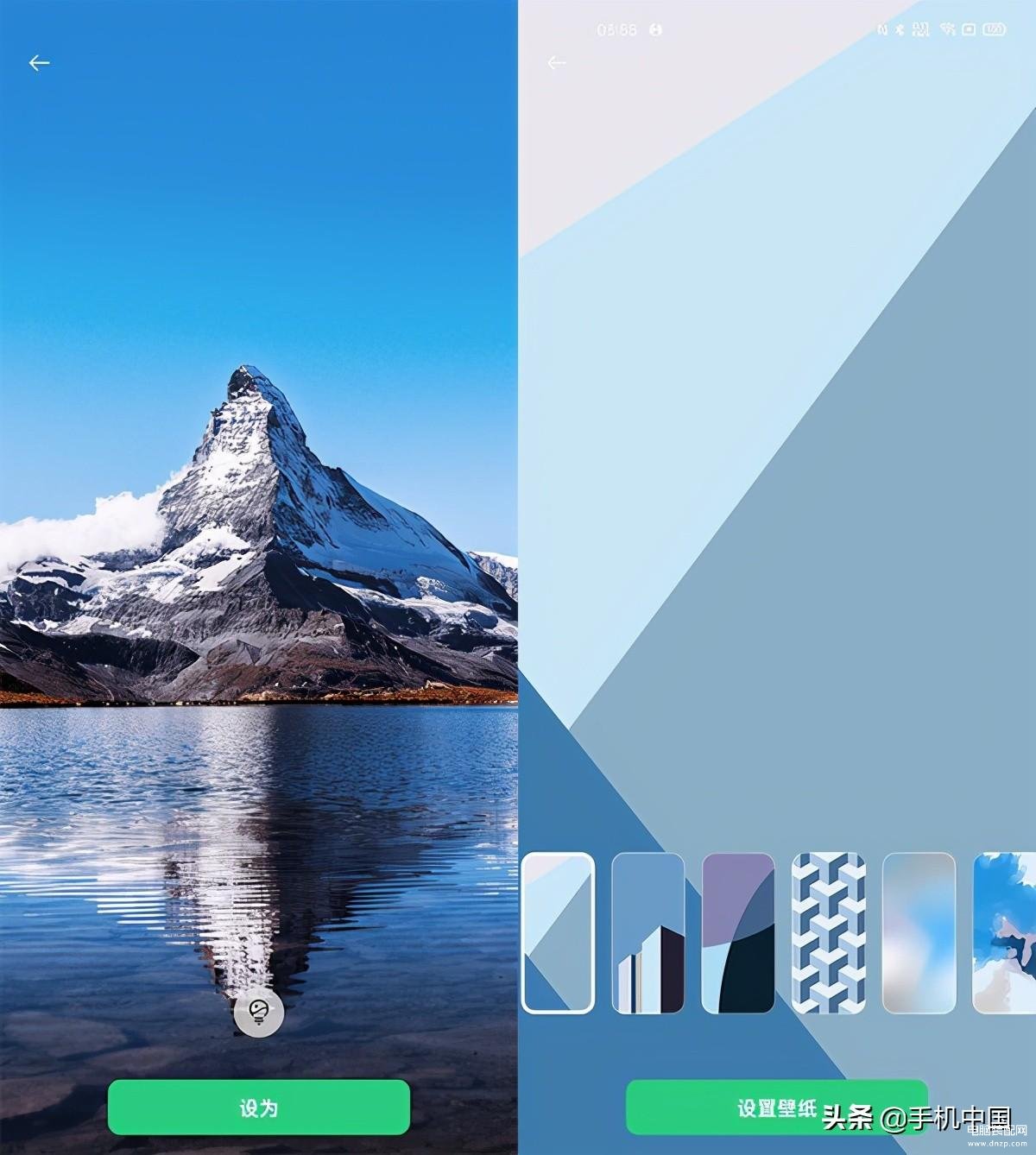 当用户自己选择图库中的图片设置壁纸时,界面上会出现一个类似“灯泡”的按钮。点击之后,系统会提取图片中的颜色自动生成新的壁纸。虽然是固定模板,但由于提取到的色彩不同,因此每一次的观感也都截然不同。