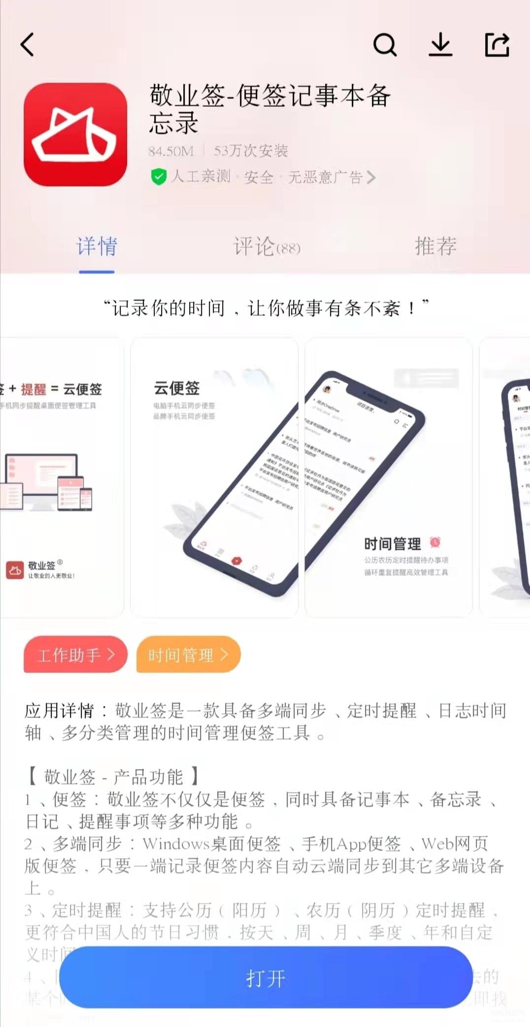 下载便签记事本大家可以到应用市场去搜索便签的名称进行下载,推荐大家可下载敬业签这个便签软件,这是一个比较专业的便签软件,有多分类功能,同时还有多品牌手机、多端同步便签上的记事内容、设定时间提醒,删除内容恢复等功能,是一款非常适合记录日常办公及生活待办事项的便签软件。