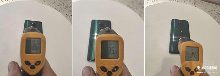 在这部分测试中,笔者将使用相同的SIM卡,在4G和5G的两种网络情况下玩《和平精英》这款游戏20分钟,保证相同场景、相同手机设置(亮度、电量、Wi-Fi和NFC开关等)、相同后台、的情况下进行测试,每次开始测试时的手机温度保持一致,主要测试手机顶部(元器件)和背部(电池)两个位置的发热情况,同样游戏画面也开到所能开到的最高特效,后台没有其他软件。