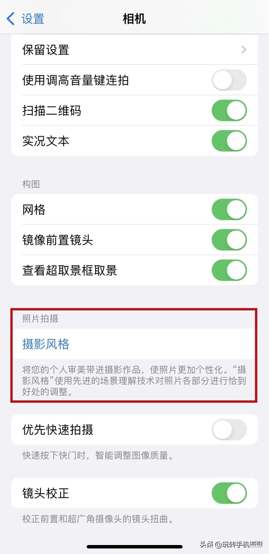 另外是用iPhone 13以上的朋友,可以点击「摄影风格」,选择「冷色调」,能让你的肤色变得冷白哦~如果没有摄影风格选项也没关系,前面那些设置参数调整好就OK了。