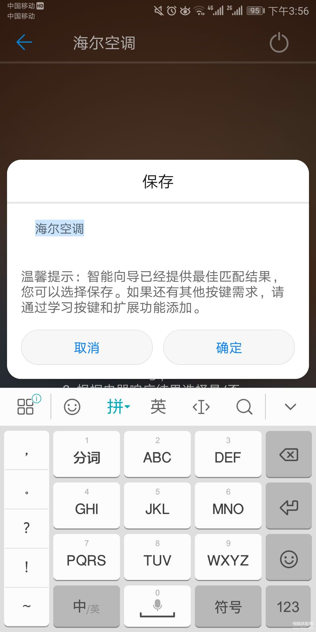 第三步:将手机对准遥控的设备并点击按钮发送红外信号,根据电器响应结果选择是/否。