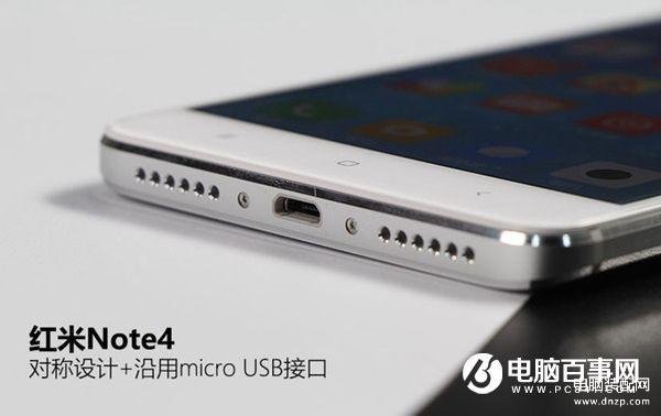 细节方面,红米Note4顶部是传统的红外线、降噪MIC以及耳机接口,正面设计有常规的听筒、摄像头、光线距离感应器,这三个部分采用了对称设计。机身底部是传统的icro USB接口和扬声器,同时采用了对称设计。