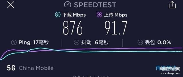 在网络连接方面,骁龙750G采用了完全集成的5G调制解调器,5G基带与骁龙765G同款,都是骁龙X52。我们同样对三星Galaxy A52 5G进行了在网5G速率测试,从权威测速软件Speedtest的测试结果来看,其下载速率达到了876Mbps,上行速率也达到了91.7Mbps,这个成绩还是很理想的。
