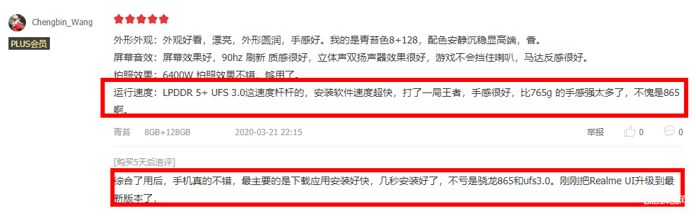 在性能配置上,realme真我X50 Pro搭载骁龙865处理器,加持LPDDR5+UFS 3.0内存组合,为手机提供非常快的读写速度,如同用户表示,安装软件的速度超快,几秒就安装好了,而且通过realme深层次的优化,用户可以体验到牛奶般的丝质流畅。值得一提的是,realme还配备全新升级的realme UI,视觉更震撼,操作更高效,体验更自然!